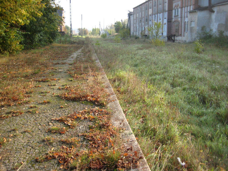 Zamknięta stacja Kargowa. Krawędź peronowa i widok ze stacji w kierunku Wolsztyna.