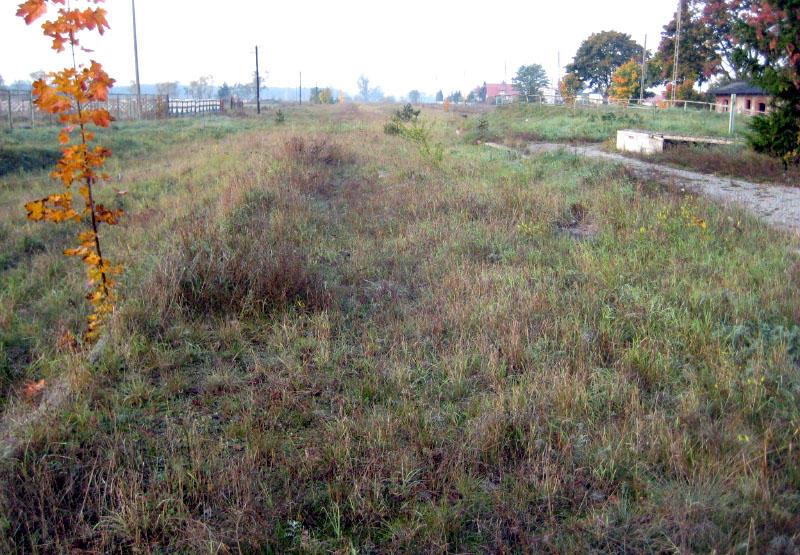 Zamknięta stacja Kargowa. Zarośnięte torowisko, widok w kierunku Sulechowa.