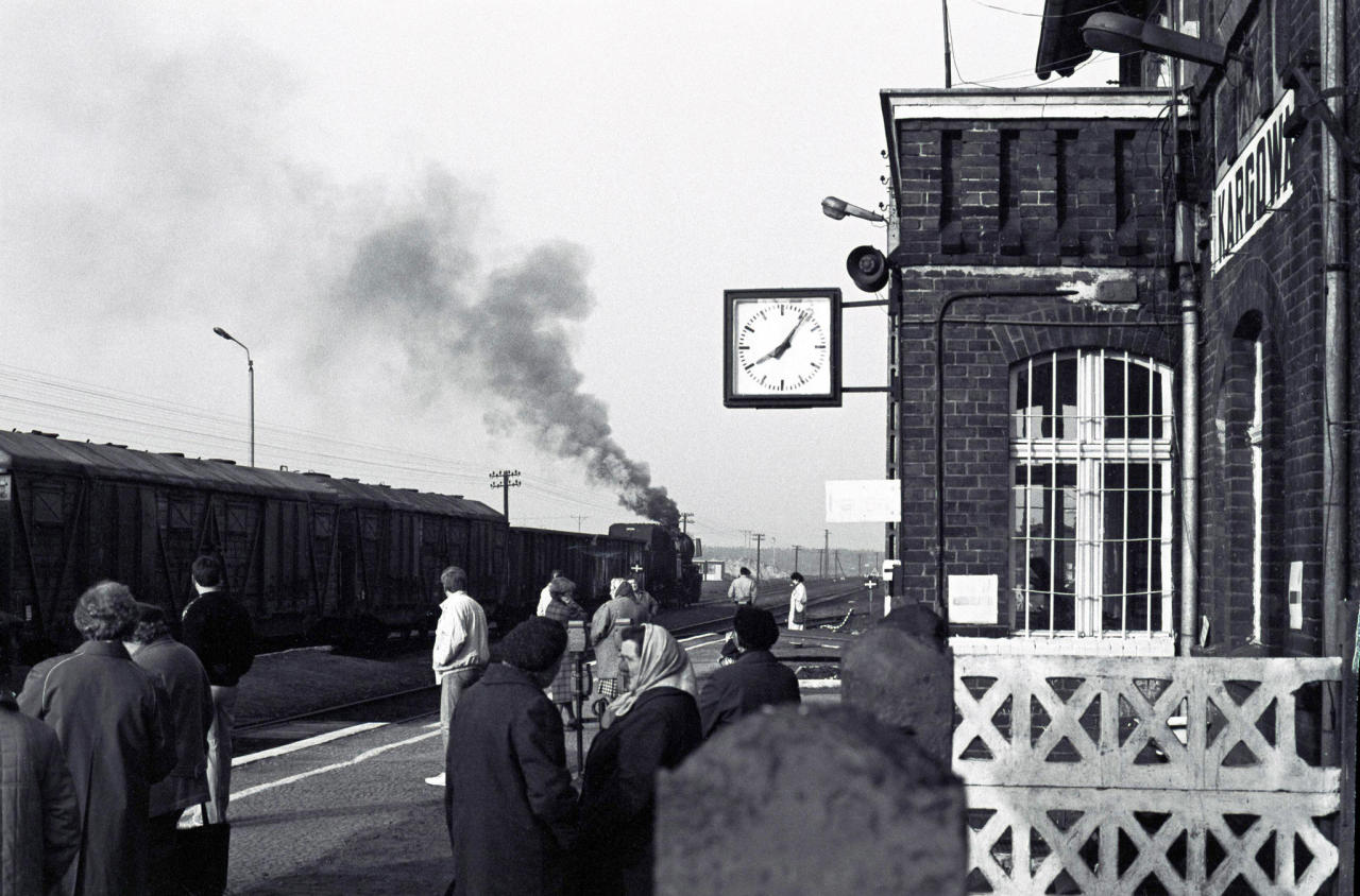Peron w Kargowej i gromada ludzi oczekujących na pociąg. A wszystkim wszem i wobec wmawiało się, że pociągami nikt nie jeździł… Widok w kierunku zachodnim (Sulechów).
