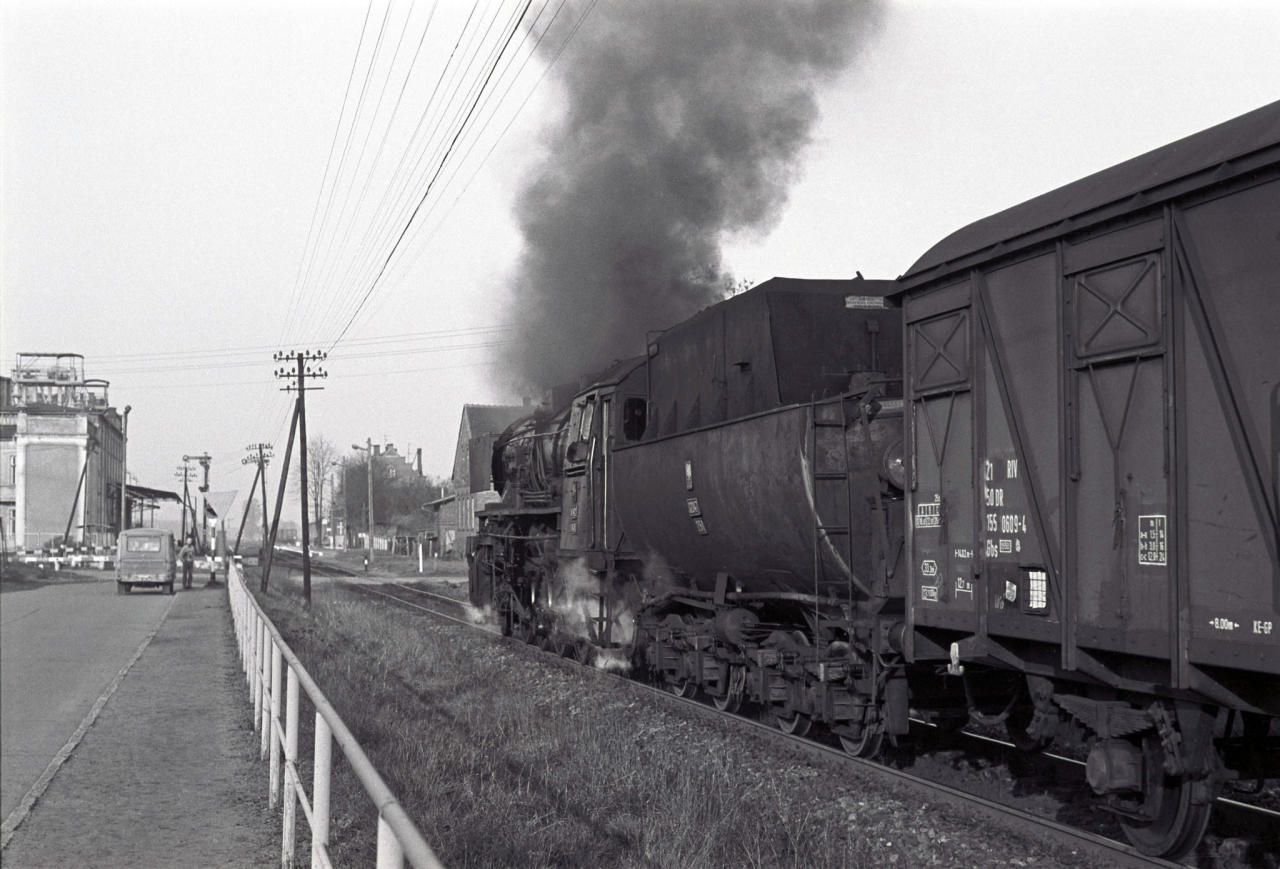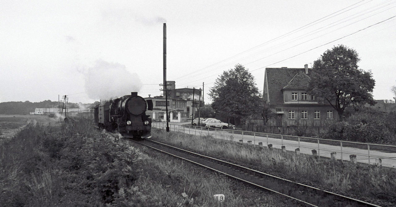 Ty2 ze zdawką z Wolsztyna wjeżdża na stację w Kargowej. Widok w kierunku wschodnim. Z prawej strony kadru fabryka czekolady, do której prowadził tor (widoczna brama wjazdowa na teren zakładu).