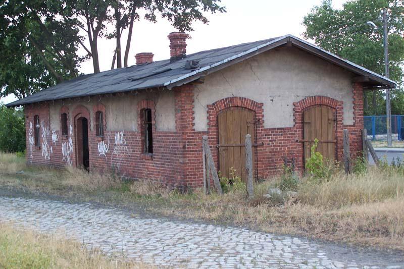 Zamknięta stacja Kargowa. Budynek dworcowy, fragment ściany wschodniej.