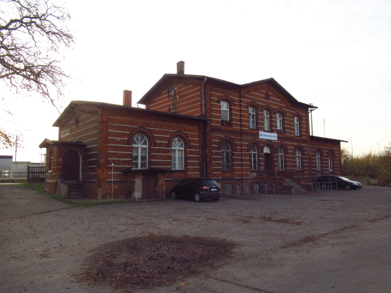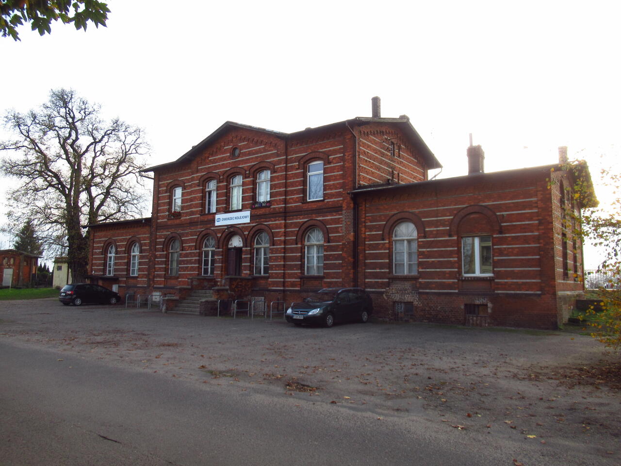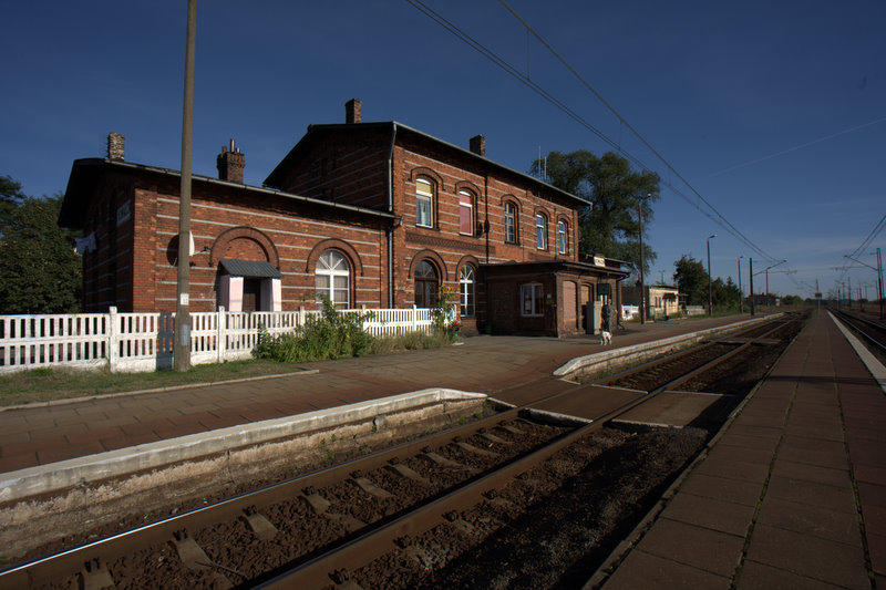 Budynek dworcowy z posterunkiem dyżurnego ruchu, widok w kierunku Kostrzyna.
