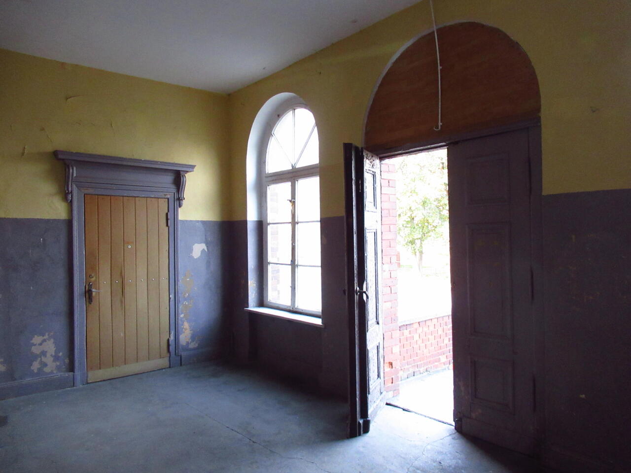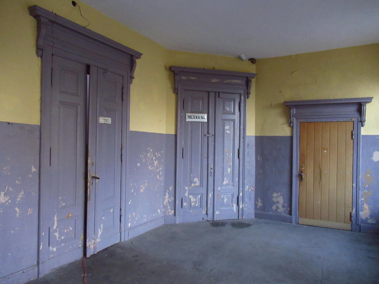 Poczekalnia, czynna. Drzwi prowadzące na peron.
