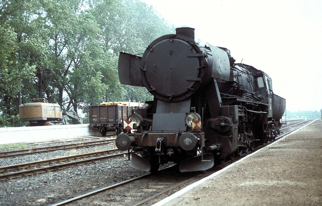 Piechowice jeszcze przed ponowną elektryfikacją linii do Szklarskiej Poręby Górnej, ale za to z potężnym Ty2 manewrującym przy peronie i dwuosiowym wagonikiem załadowanym drewnem stojącym przy rampie. Z prawej strony stoją wagony pociągu specjalnego, który przyciągnął tu Teigrek. Widok w kierunku Jeleniej Góry.
