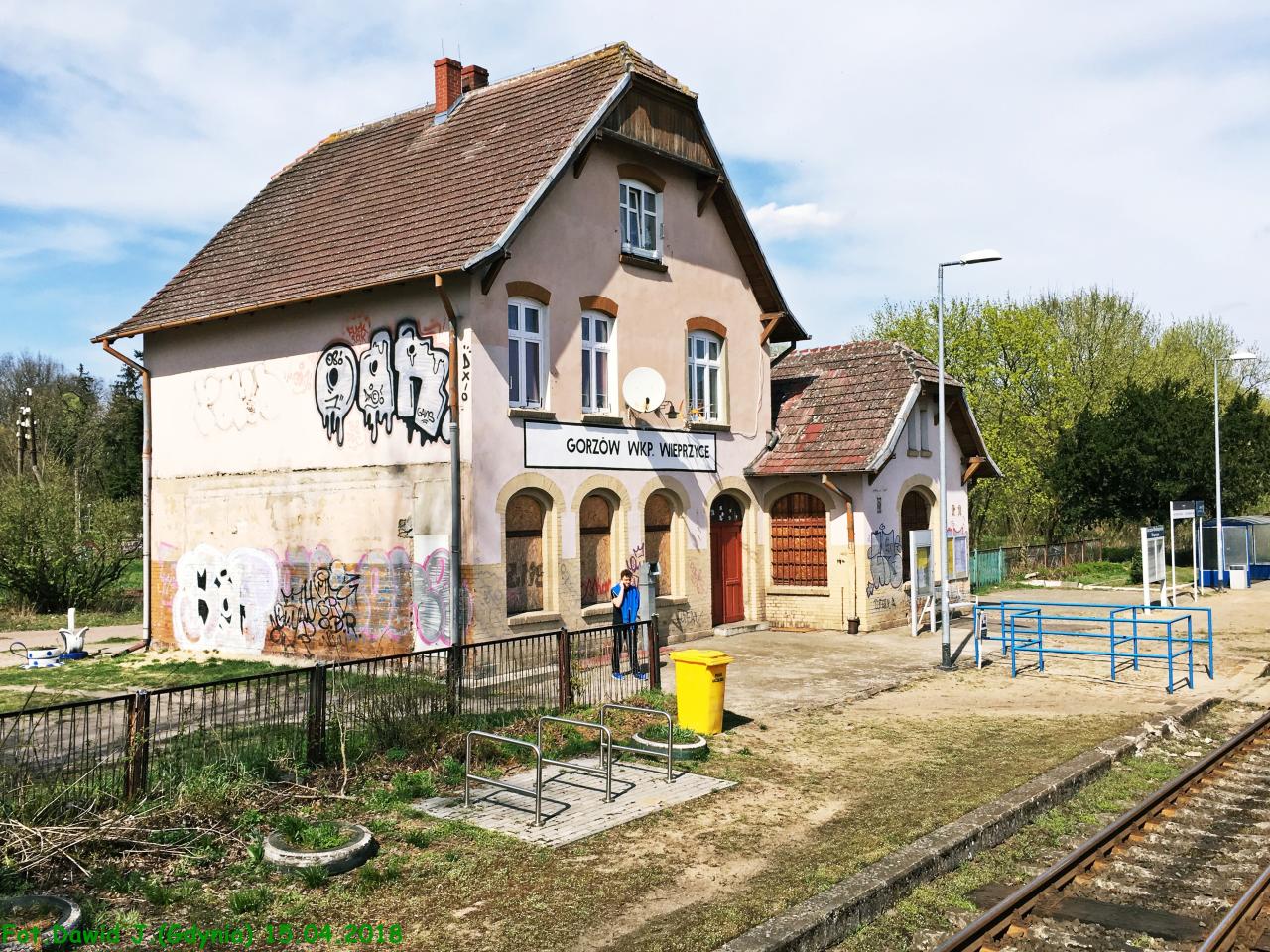 Gorzów Wielkopolski Wieprzyce. Widok na budynek dworca od strony podjazdu, w kierunku południowym.