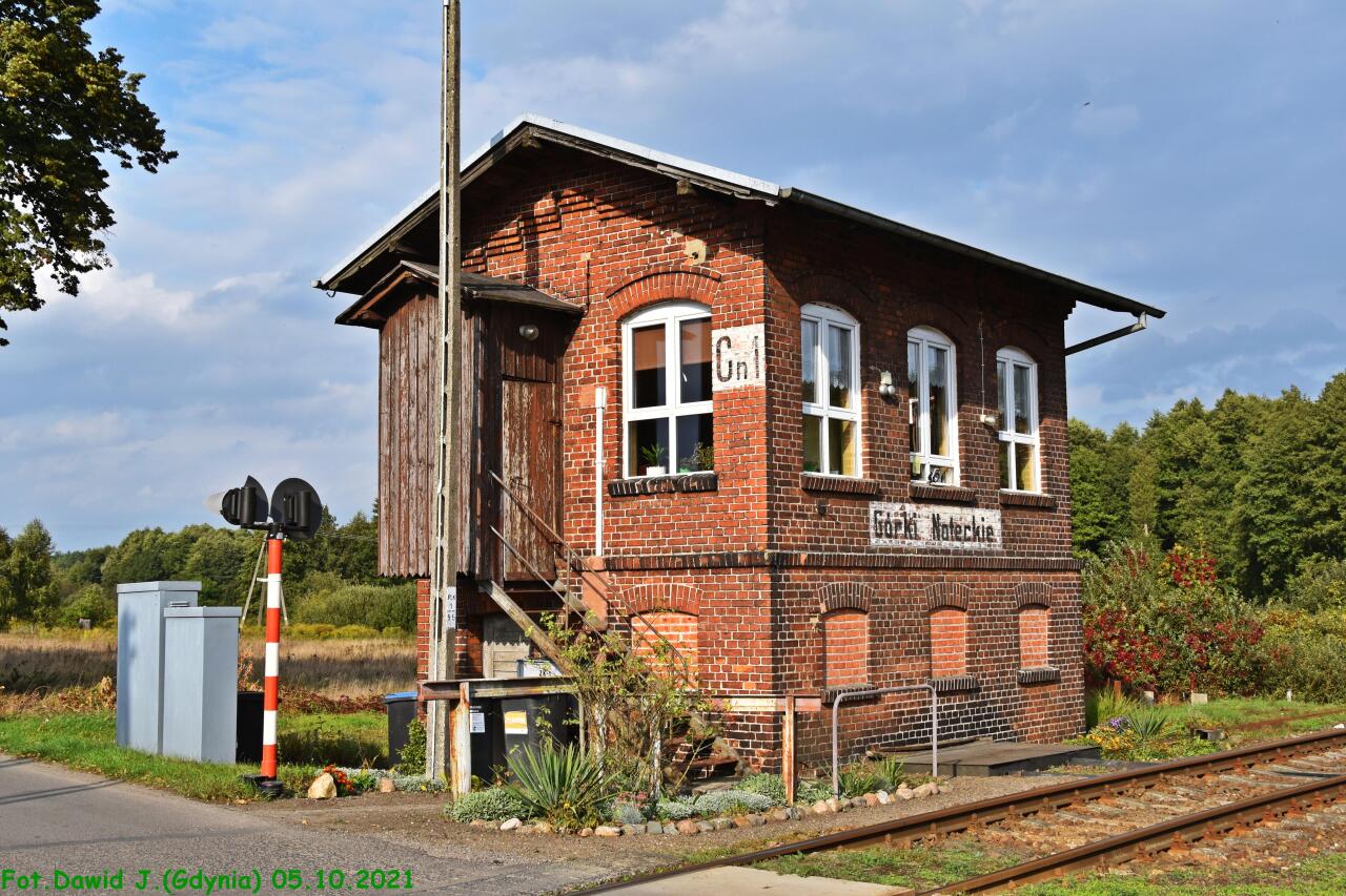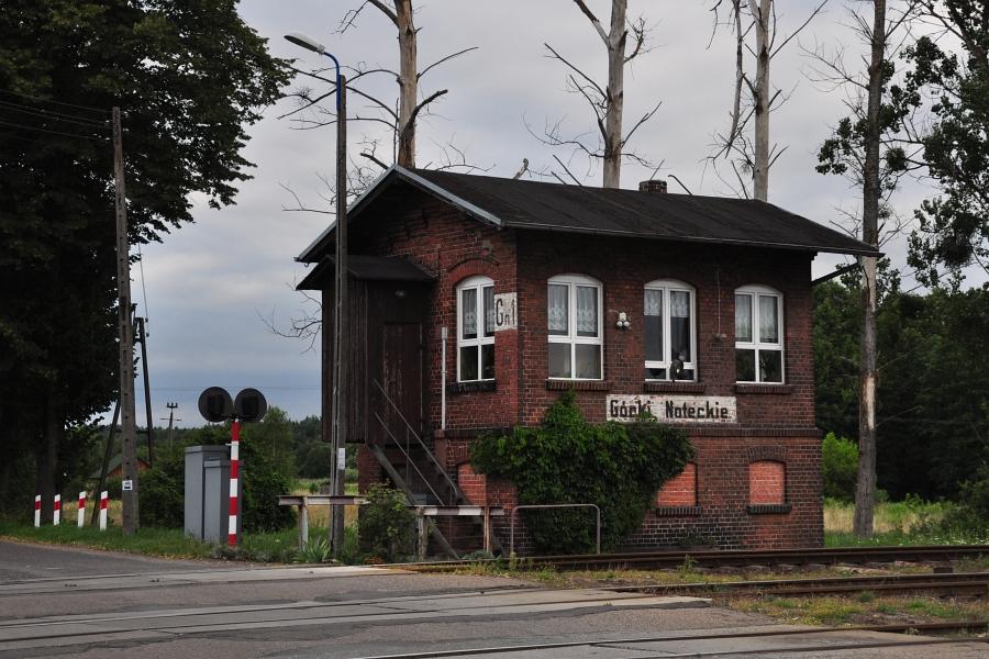 Przepiękna nastawnia wykonawcza w Górkach Noteckich, stojąca na głowicy od strony Strzelec Krajeńskich Wschód/Krzyża (w prawo). W lewo na perony.