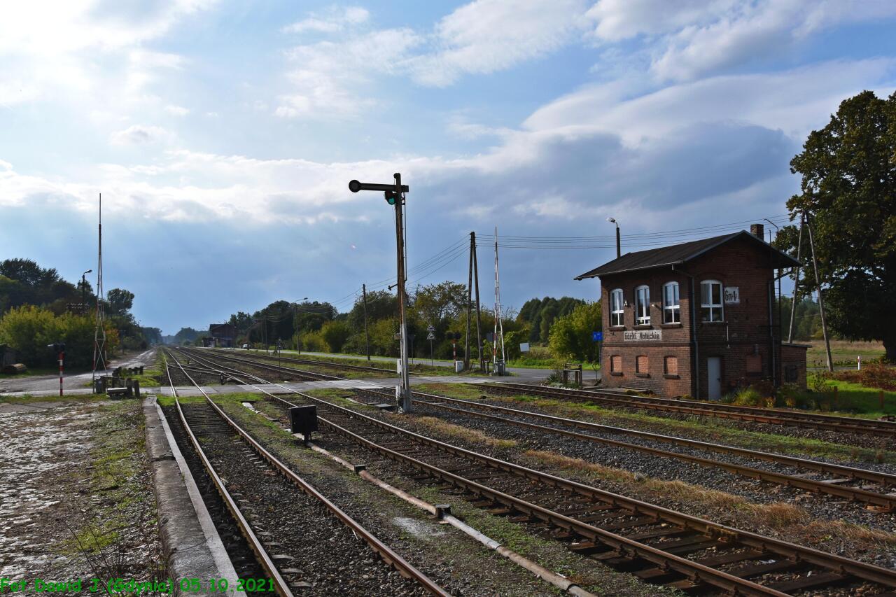 Widok na tory stacyjne oraz w kierunku Gorzowa Wielkopolskiego/Kostrzyna. Budynek nastawni "Gn1" znajduje się po prawej stronie.