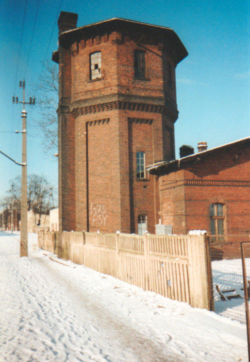 Wronki. Wieża wodna od strony torów w styczniu 1999 r.