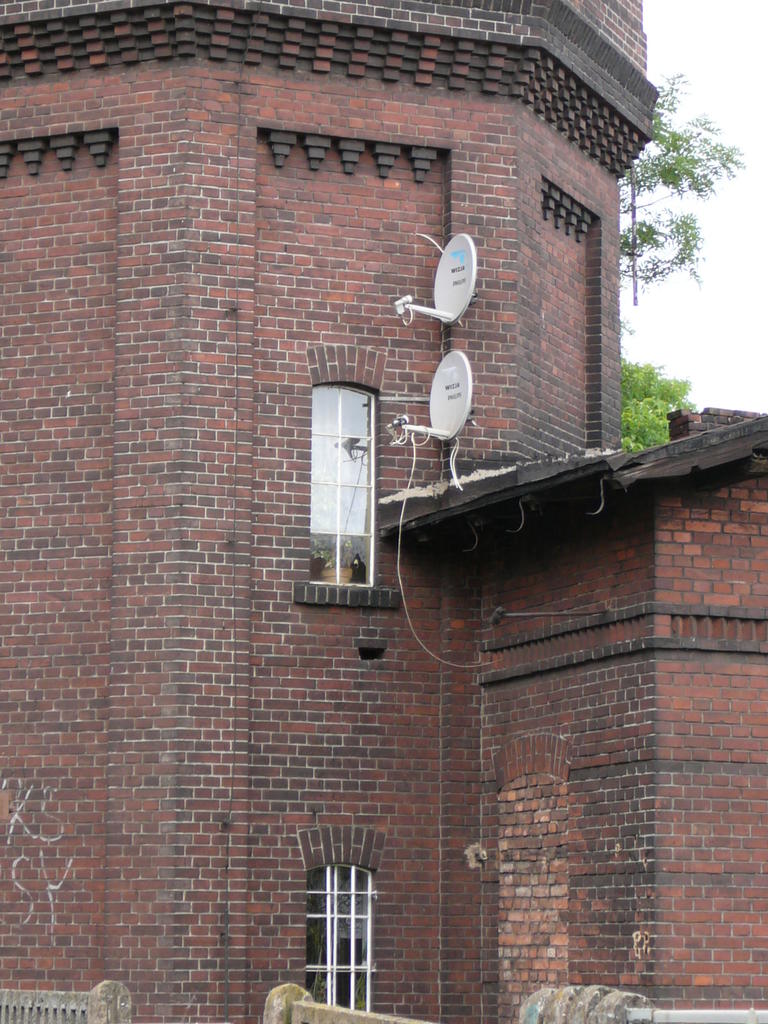 Wronki. Wodna wieża ciśnień widziana od południa. Czyżby wieża była sterowana sat elitarnie…?