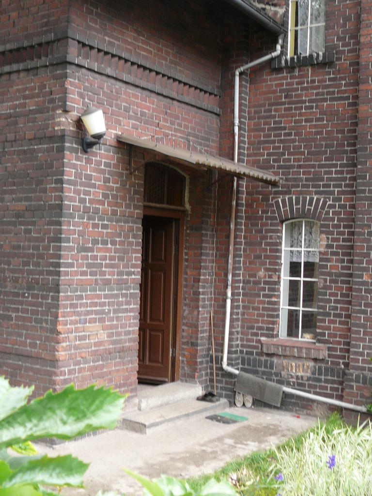 Wronki. Wejście do wieży wodnej przez budynek przy wieży.