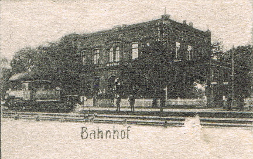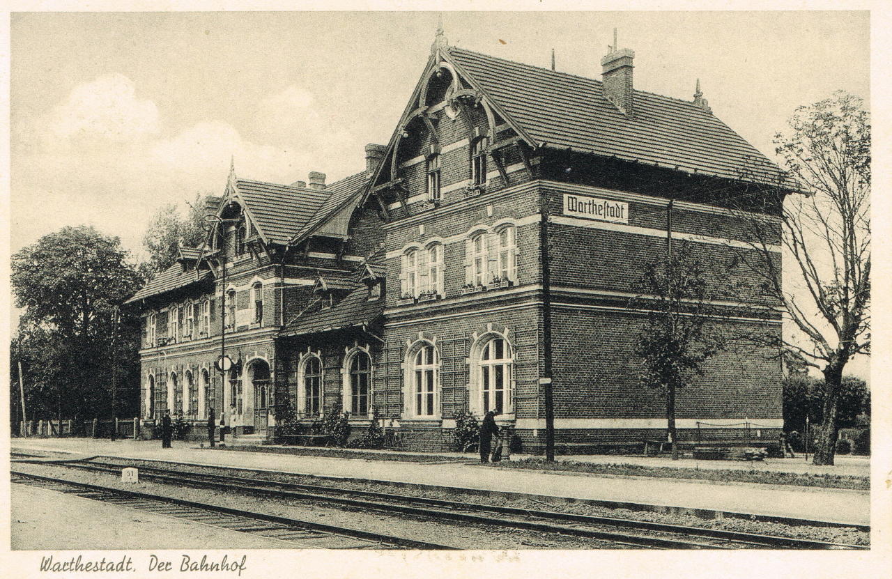 Dworzec we Wronkach. Podczas okupacji jako Warthestadt. Skan z pocztówki.