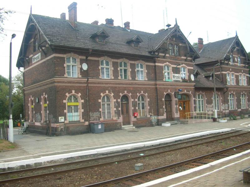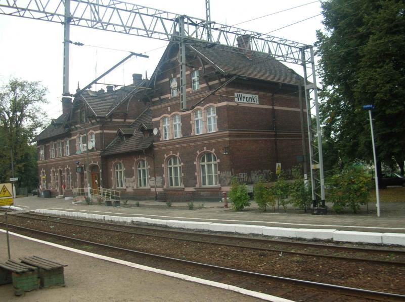 Wronki. Widok budynku stacyjnego od strony północno-zachodniej.
