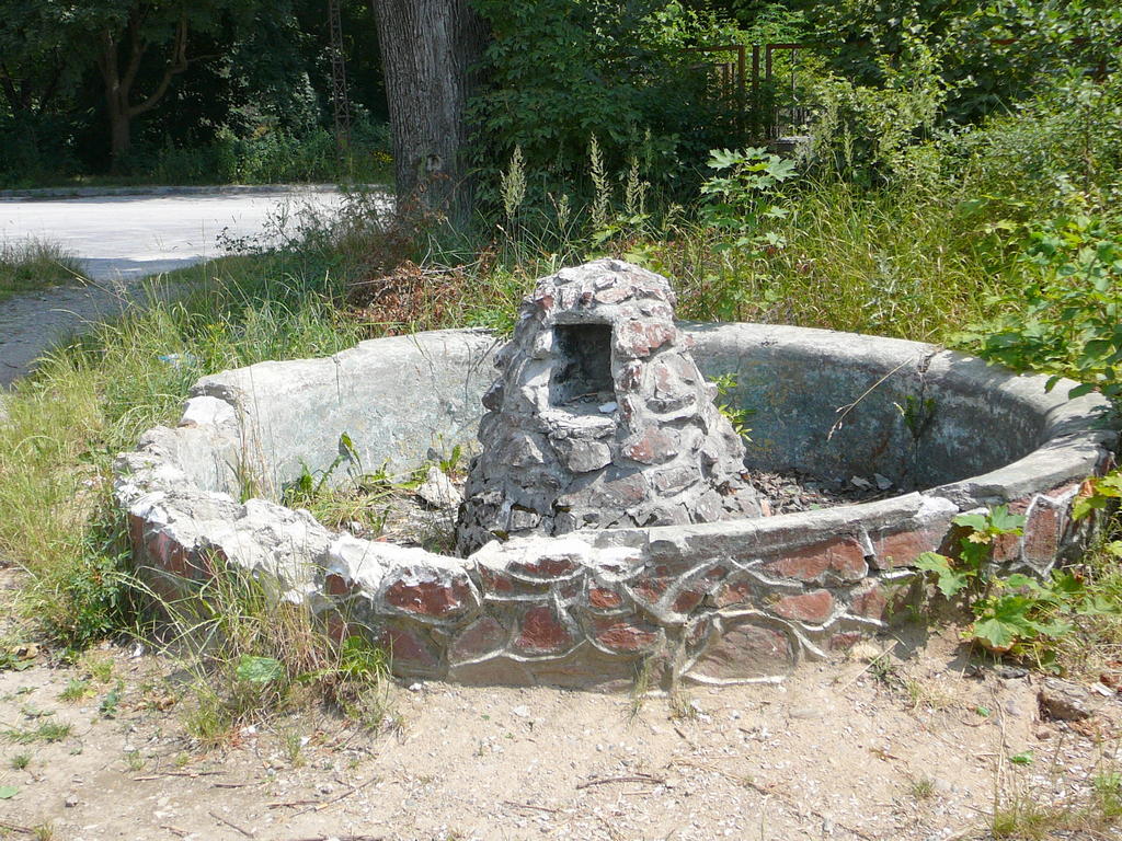 Wojcieszów Górny. Pozostałość po fontannie na peronie.