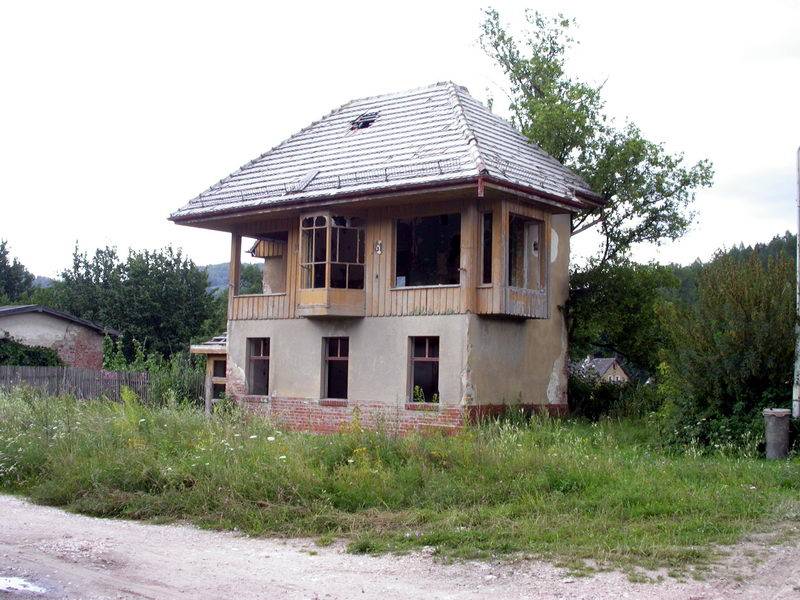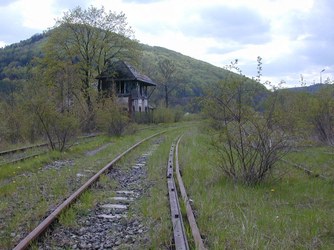 Nieczynna nastawnia od strony wjazdu z Marciszowa (w prawo).