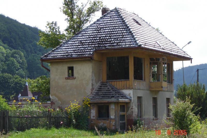 Wojcieszów Górny. Fragment budynku dworca od strony podjazdu. Po prawej stronie był magazyn towarowy.