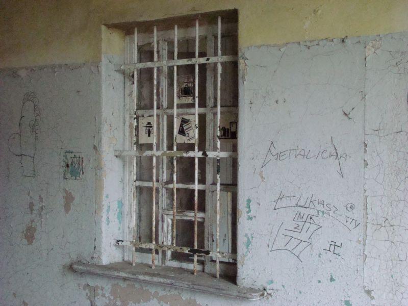 Okienko kasowe zamknięte; czekające na podróżnych, którzy już nigdy tu nie przybędą.