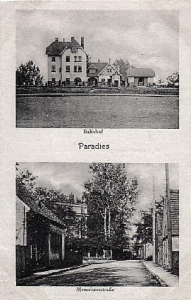 Stacja kolejowa Paradyż. Magazyn towarowy i budynek dworca od strony peronów. Widok od strony wjazdu ze Staropola/Toporowa.