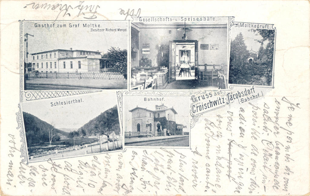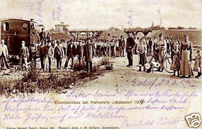Pierwotny wygląd przystanku w leżącego bliżej Jakubowa niż późniejsza stacja.