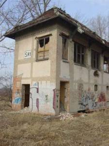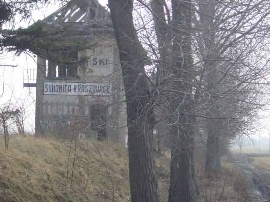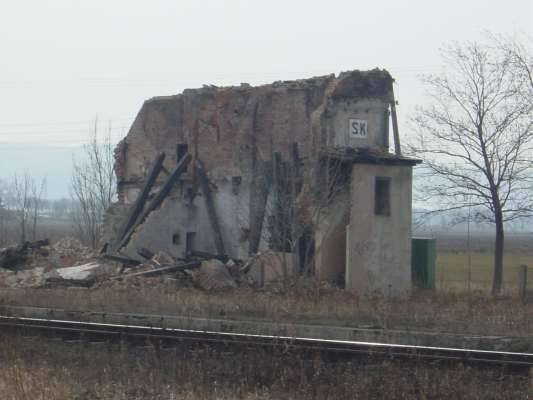 Zrujnowana nastawnia SK, widok w stronę miasta.