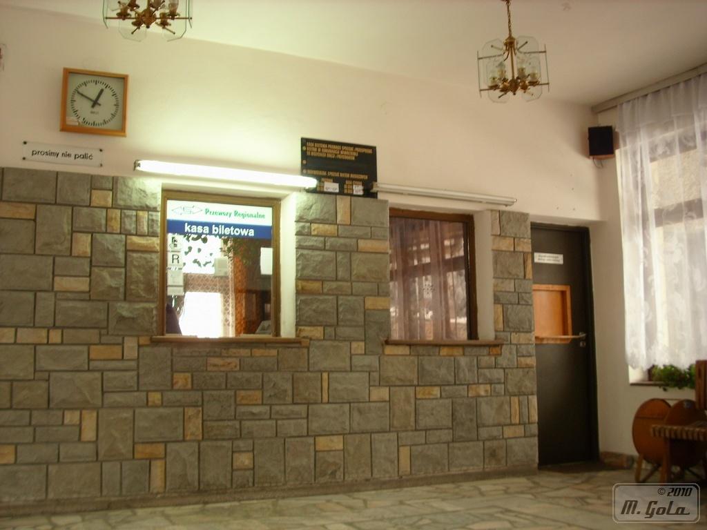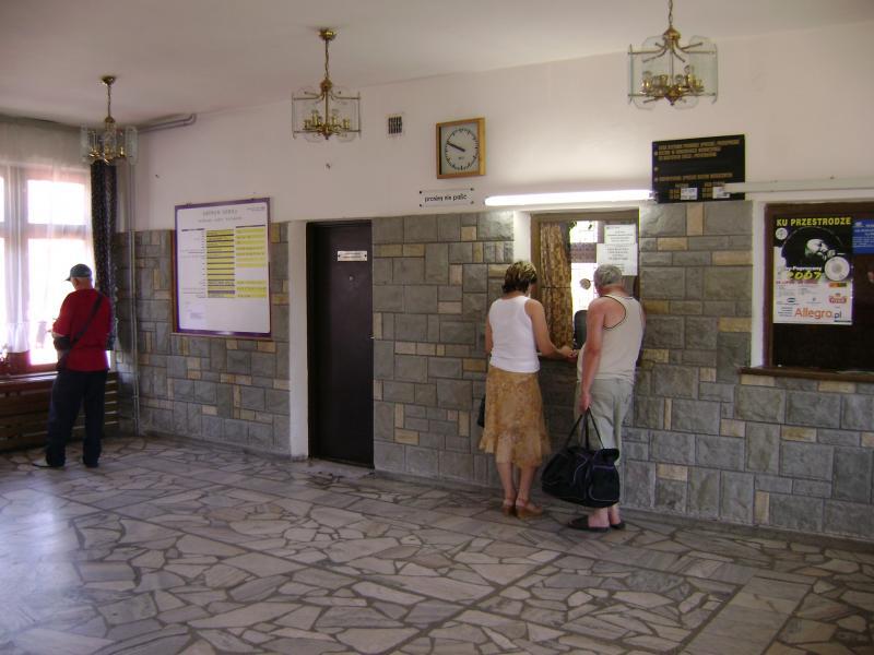 W budynku stacyjnym znajduje się bardzo dobrze utrzymana poczekalnia z oryginalnymi żyrandolami. Kasa biletowa jest czynna. Latem przewija się przez nią bardzo dużo ludzi i z zawsze ktoś w niej przebywa jak widać na zdjęciu.