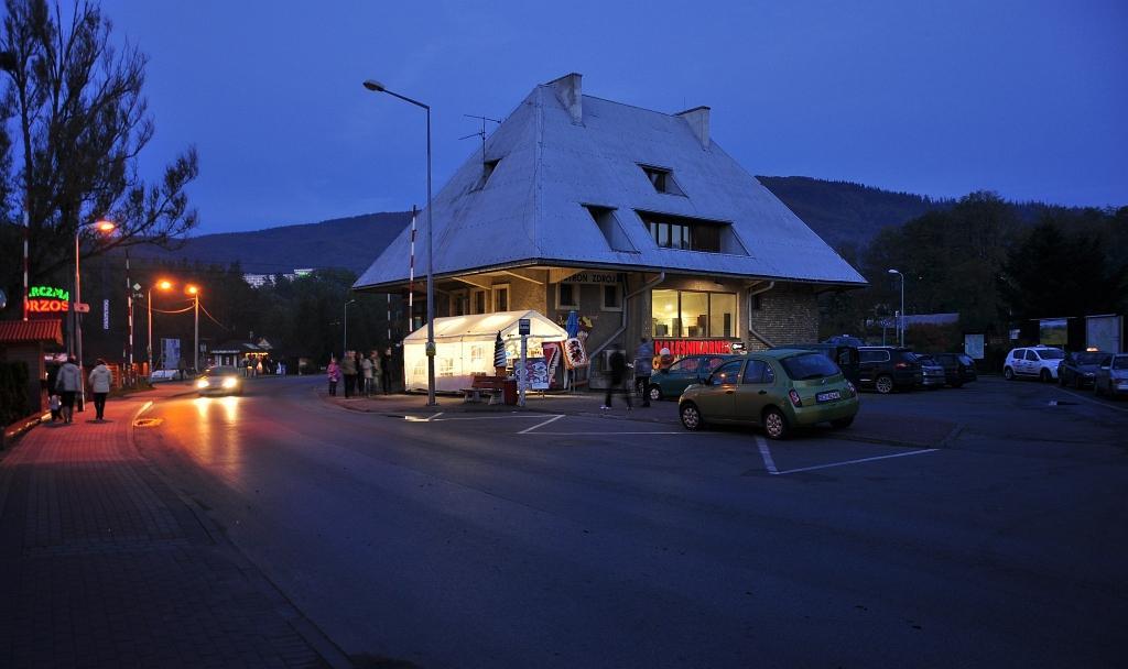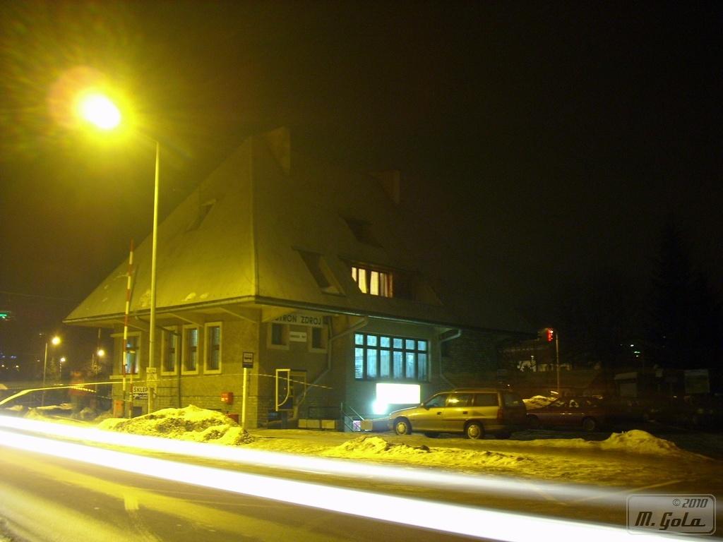 Ustroń Zdrój. Budynek stacyjny nocą.