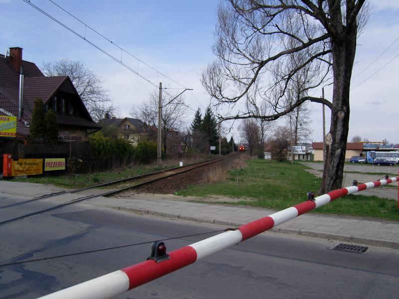 Przejazd kolejowy z rogatkami przy przystanku Ustroń Zdrój.