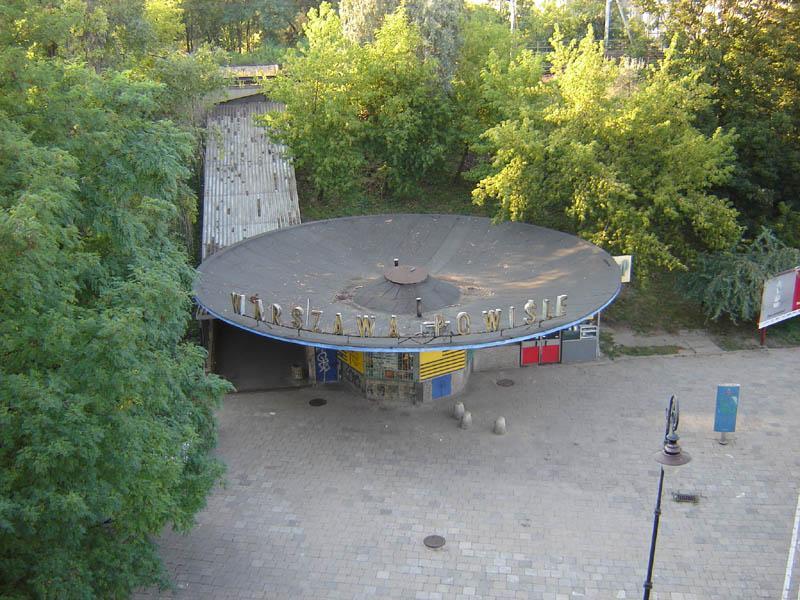 Wejście na stację "Powiśle" od ulicy Solec. Zdjęcie zrobione z Wiaduktu Poniatowskiego.