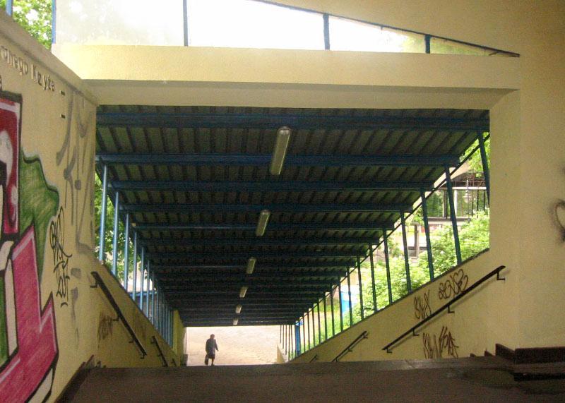 Warszawa Powiśle PKP. Wyjście z peronów w kierunku ulicy Kruczkowskiego i Czerwonego Krzyża.