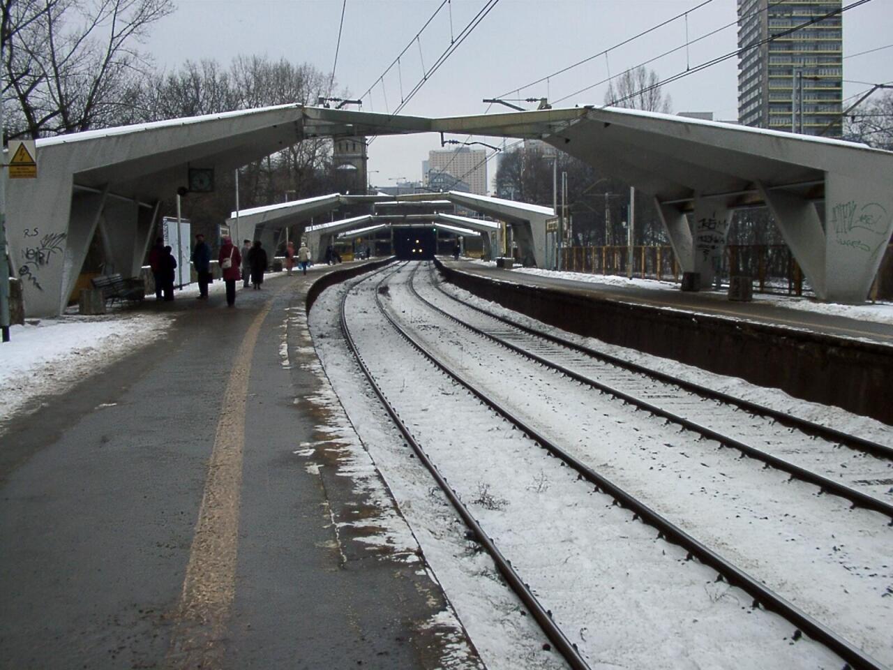 Warszawa Powiśle PKP. Perony 1 i 2 rozpoczynają się przy wjeździe do tunelu średnicowego. Dla podróżnych są wyjścia w kierunku Alei Jerozolimskich.