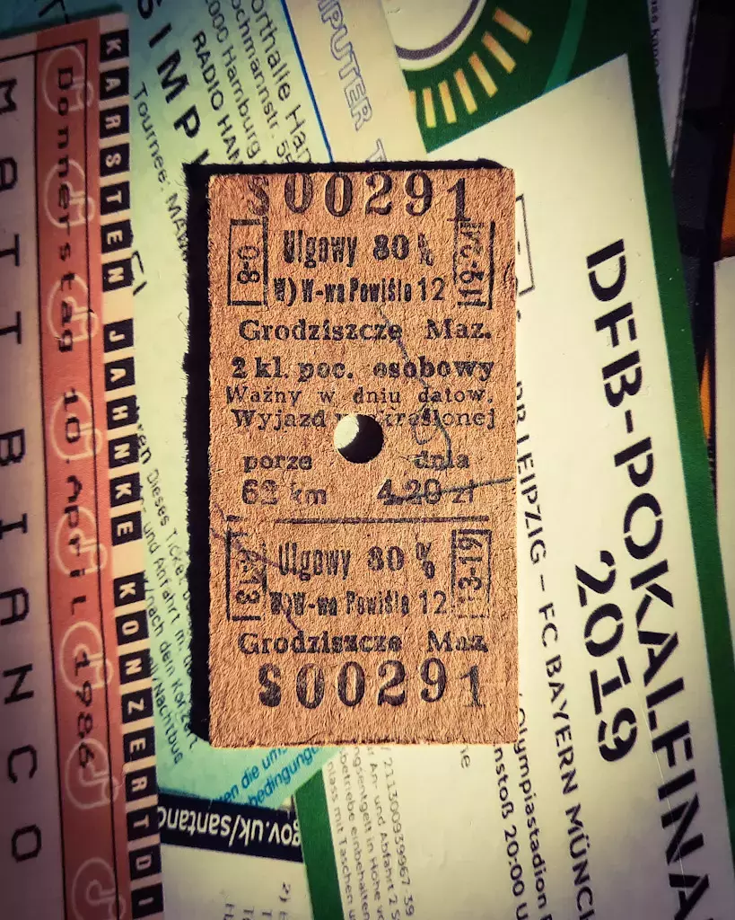 Bilet kartonikowy wydany na stacji Warszawa Powiśle.