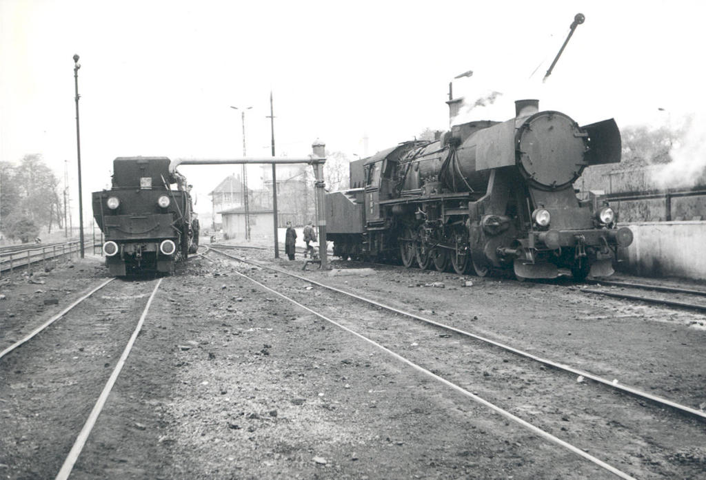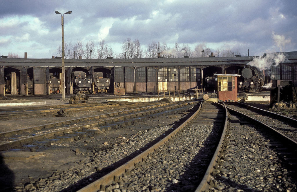 Obrządzanie teigreków na torach trakcyjnych jaworzyńskiej szopy. Widok w kierunku południowo-zachodnim, od strony wjazdów ze Świdnicy (z lewej) i Wrocławia (z prawej). Ze zbiorów Adama Pacześniaka.
