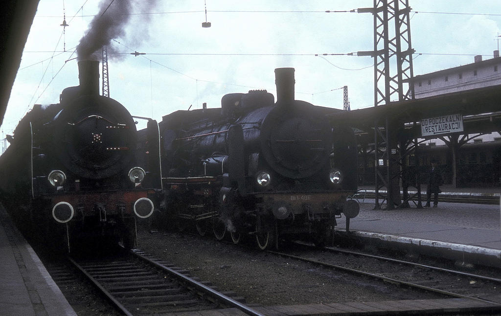 Spotkanie Ok1 na stacji w Jaworzynie Śląskiej. Z lewej strony, przy peronie 3 stoi pociąg specjalny, który przyjechał z kierunku Świdnica. Z prawej strony, przy peronie 2 stoi najprawdopodobniej do Marciszowa, przez Strzegom. Widok w kierunku północno-wschodnim: Wrocław, Świdnica.