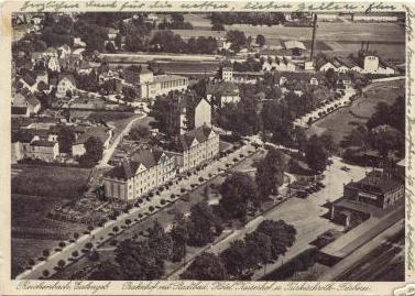 Stacja Dzierżoniów - widok na parowozownię i suwnicę, w kierunku północno-wschodnim; w lewo perony, w prawo Piława Górna, Bielawa.