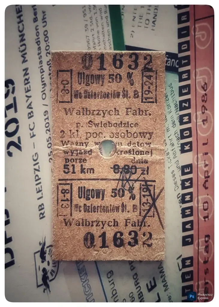 Bilet kartonikowy wydany na stacji Dzierżoniów Śląski.