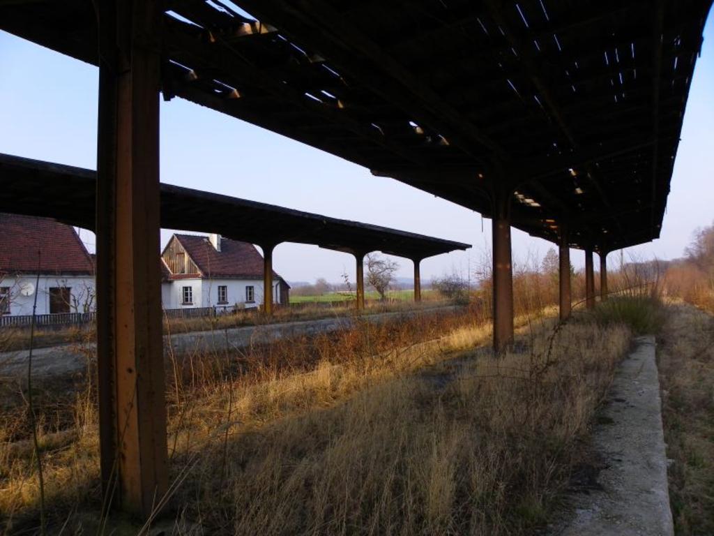 Poblokowane rozjazdy, część z nich została zdemontowana. Przy budynku brukowany plac przeładunkowy i niewielka rampa (info: Karol Romaniuk, 17-03-2010) W dnia 6-8.03.2017 na zlecenie PKP S.A. rozebrano obie wiaty peronowe oraz tory ładunkowe prowadzące do placu przeładunkowego. Usunięto również pierwotną nawierzchnię obu peronów. |