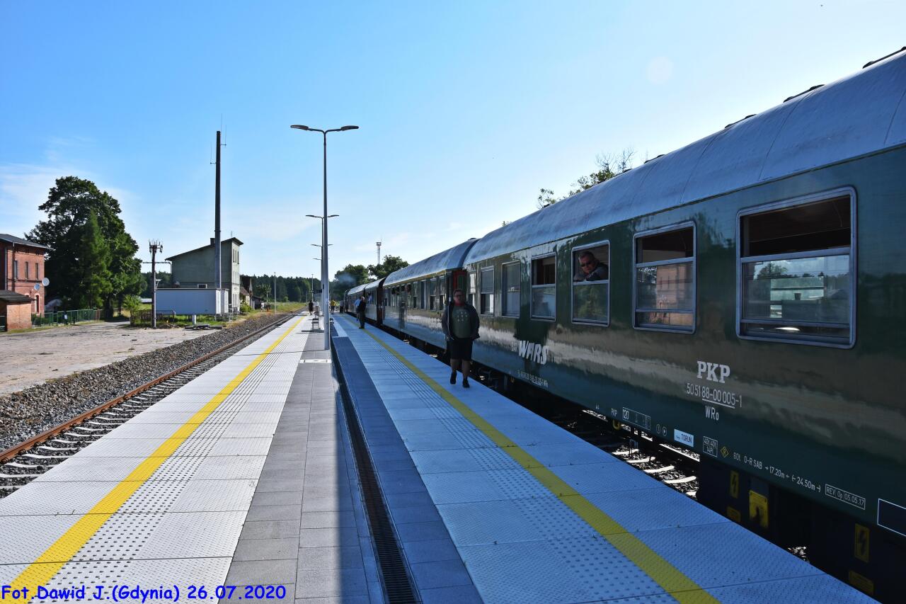 To była kiedyś bardzo fajna stacja, a od dziś (14.XII.2003 r.) będą kursować tylko trzy pociągi w jedną stronę i trzy w drugą w takich godzinach, że mogłyby wcale nie jeździć. (info: repcak) Istnieje bocznica do rozlewni gazu - używana do 2010 roku. Dla pociągów jadących na bocznicę "Szeroki Bór" wraz z sygnałem zezwalającym lub sygnałem zastępczym na semaforze wyjazdowym wyświetla się wskaźnik W 2 "Wskaźnik kierunku jazdy" z literą "B". |