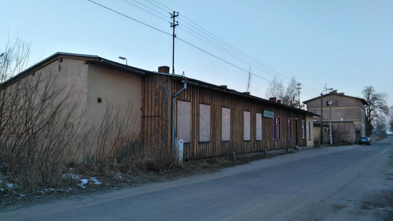 PKP Mrocza. Jeden z budynków kolejowych na przystanku.