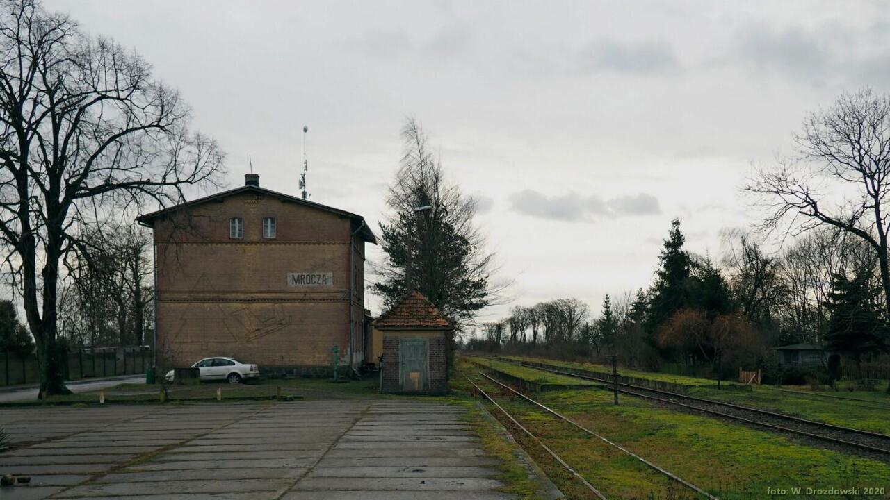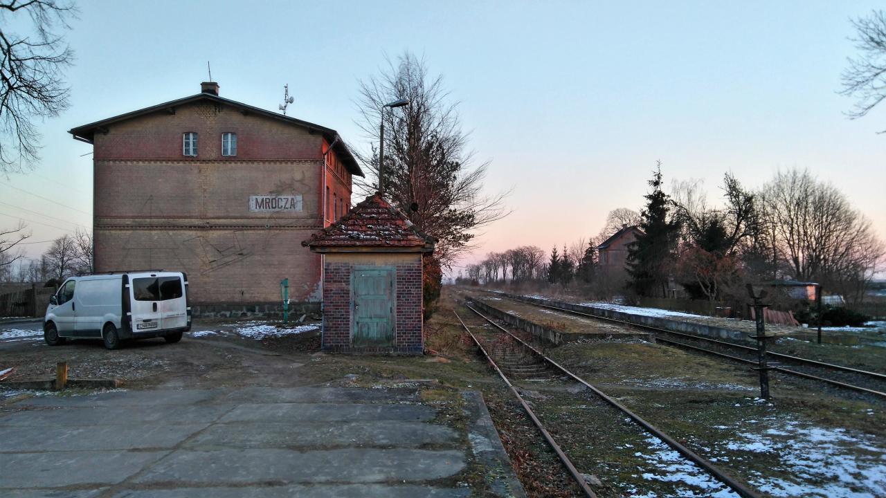Mrocza. Kolejna opuszczona stacyjka, aktualnie robiąca za ładownię. Można tutaj jeszcze złapać niekiedy pociągi zdawcze od strony Nakła n/Notecią (za plecami).
