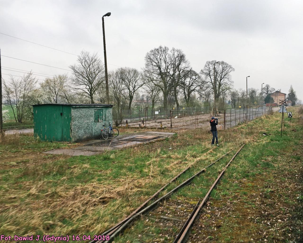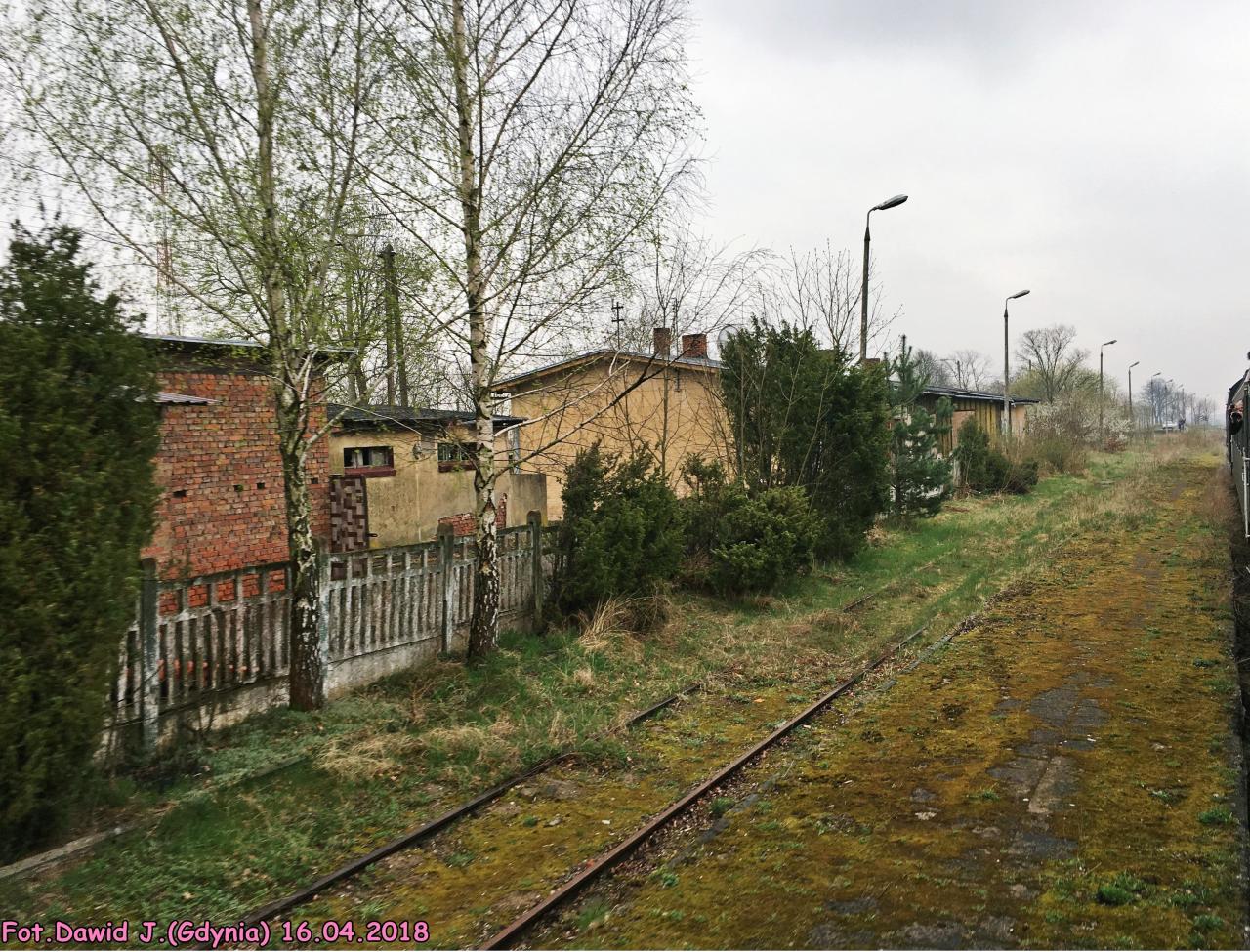 Wjazd na stację od strony Więcborka/Chojnic. Waga i plac ładunkowy, znajdują się po lewej stronie. Widok w kierunku Nakła nad Notecią/Oleśnicy.