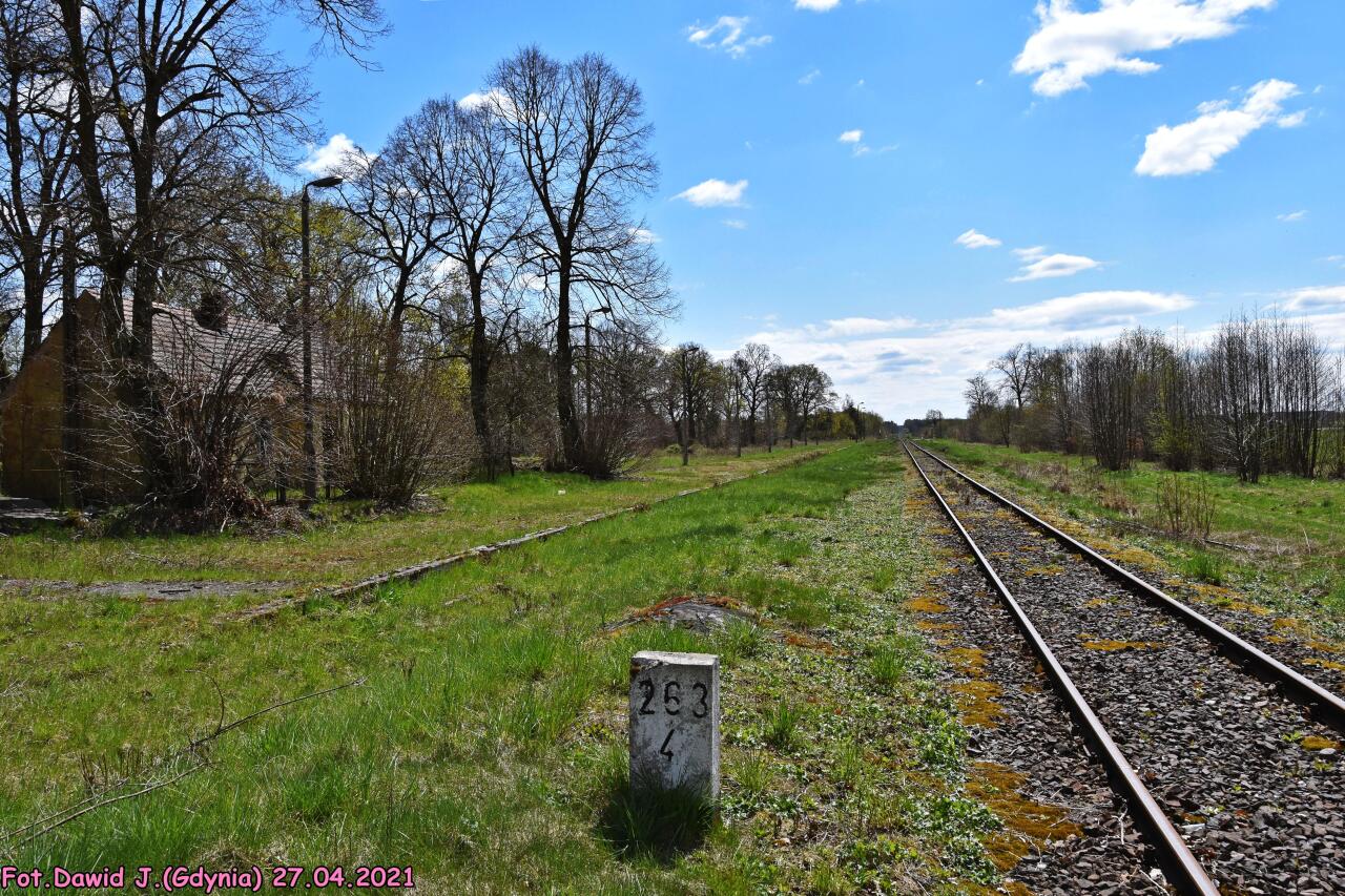 budynki dworcowe: Budynki mieszkalne i gospodarcze stoją, drewniany dworcowy rozebrano.
