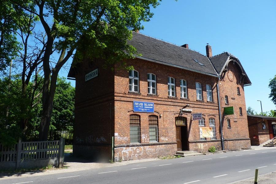 Owińska - budynek stacji od strony parkingu.