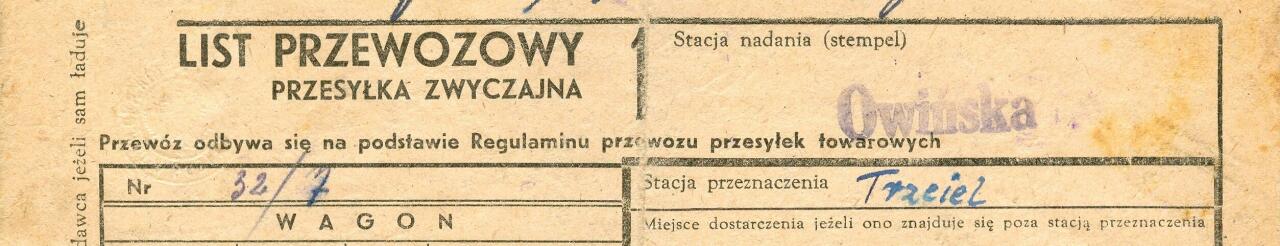Fragment skanu listu przewozowego z widoczną nazwą stacji Owińska (stempel).