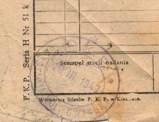 Odcisk datownika na liście przewozowym.