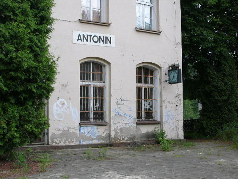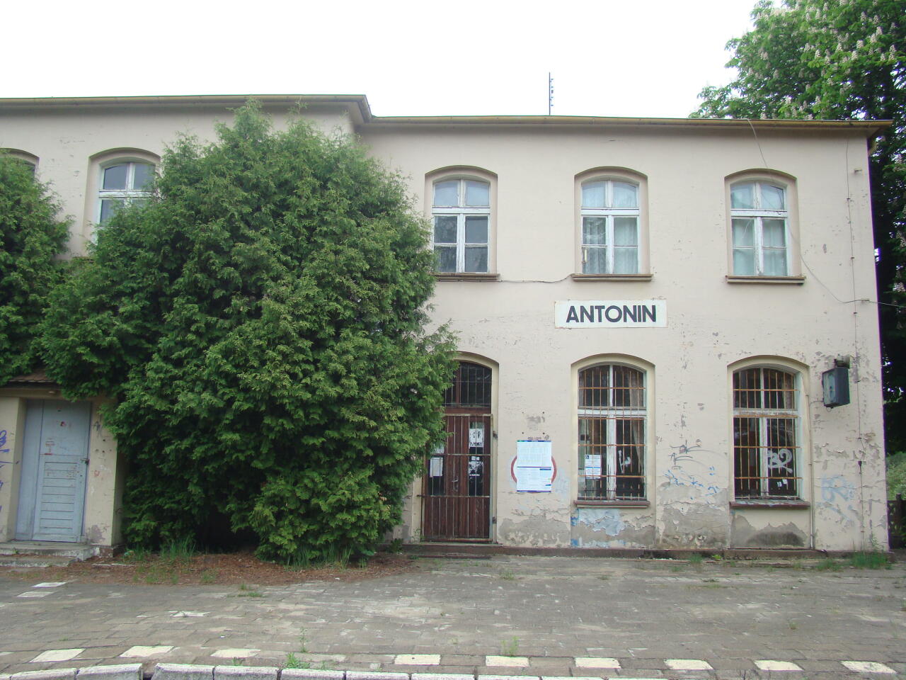Antonin, km 70,4. Budynek dworca od strony torów.