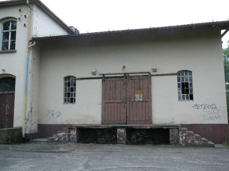 Antonin. Nieczynny magazyn przy budynku dworca.