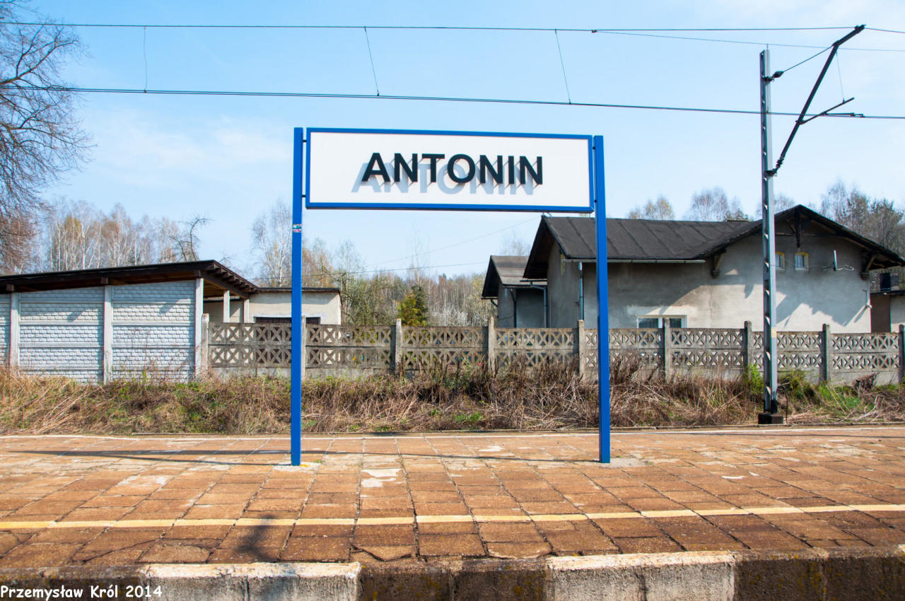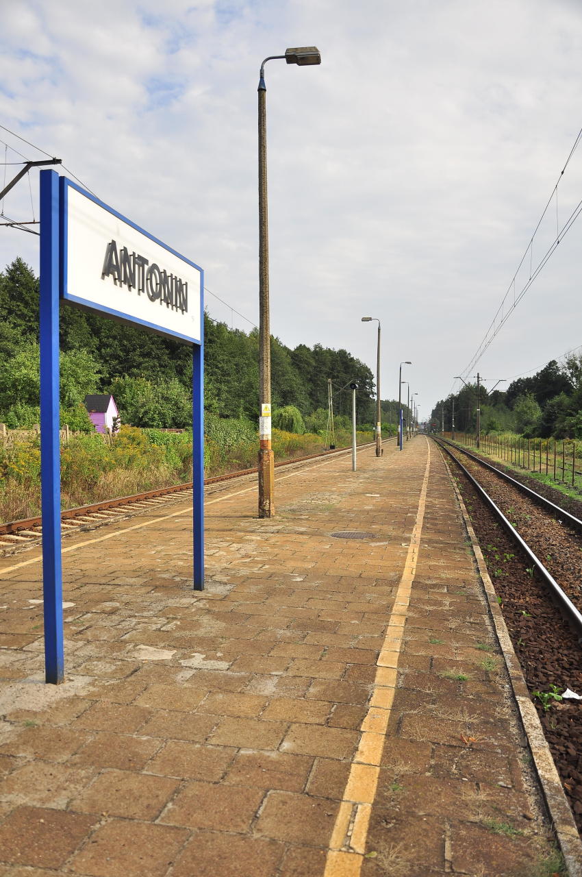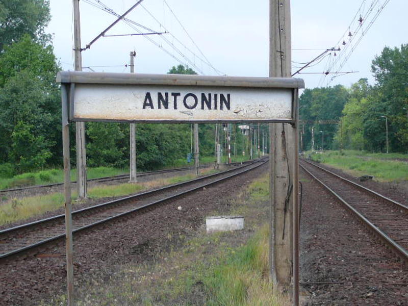Antonin. Tablica i tory w kierunku Ostrowa Wielkopolskiego.