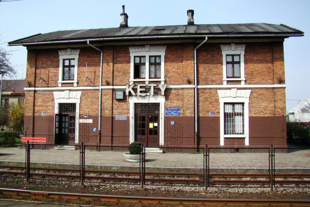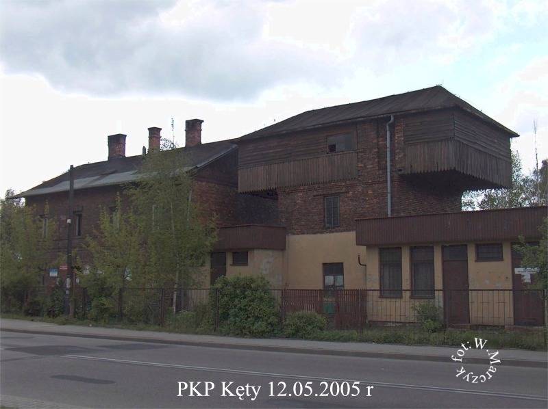 Kęty (117) km 41,9. Budynek dworca. Widok od strony peronów; w lewo Bielsko-Biała, w prawo Wadowice.