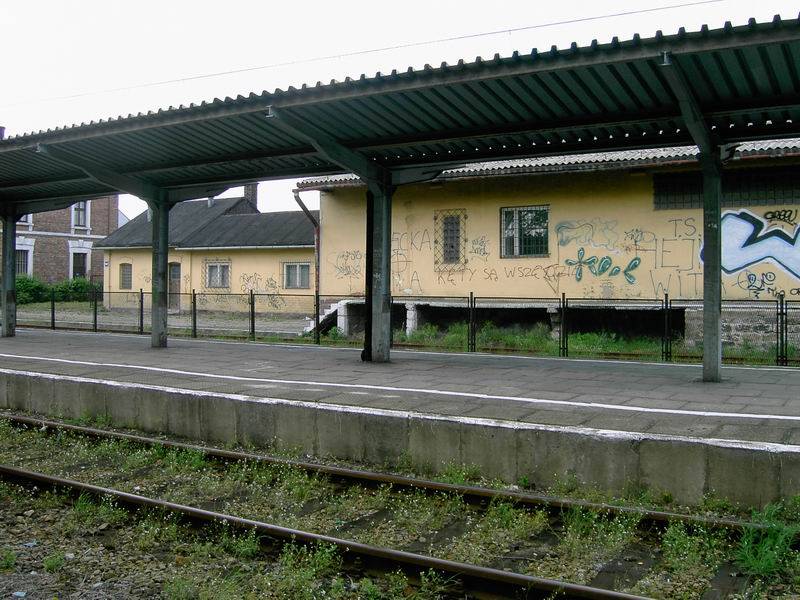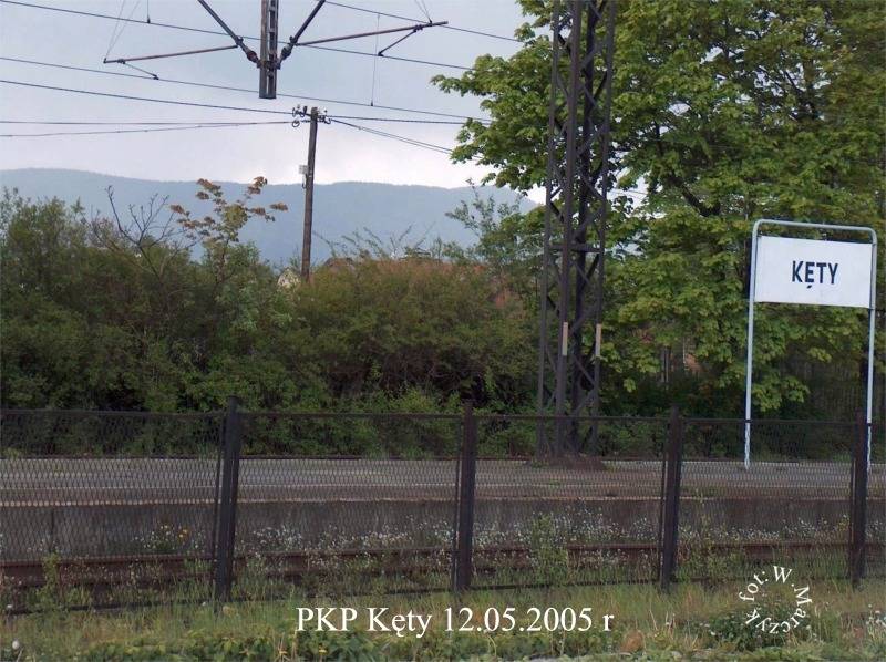 Kęty (117); km 41,9. Peron czynny. Z prawej dworzec. Widok od strony Wadowic.