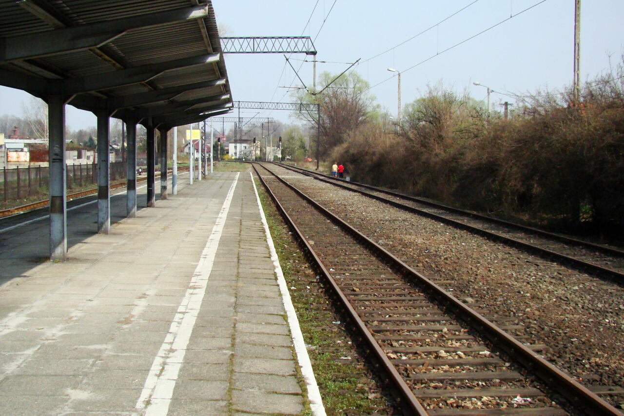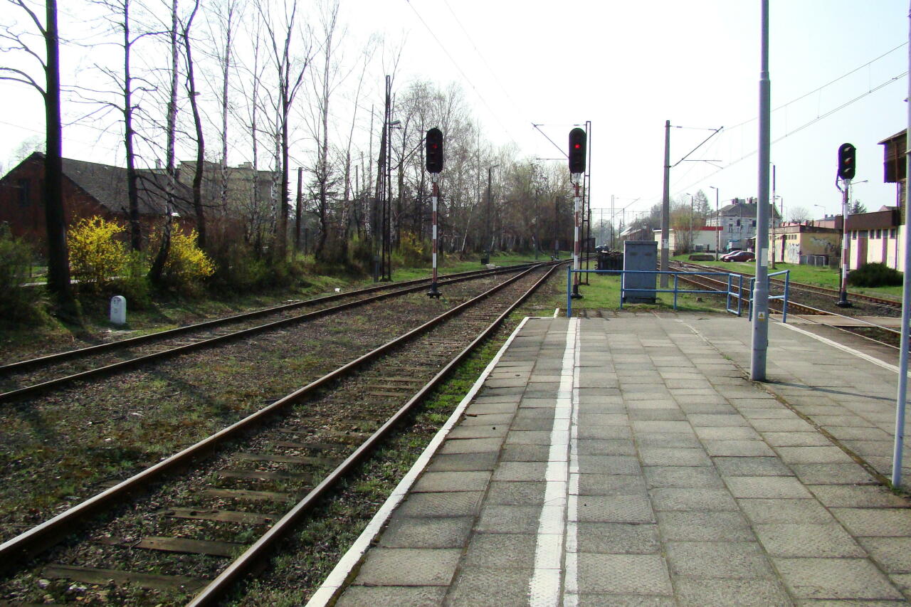 Kęty (117) km 41,9. Peron wyłączony z eksploatacji. Widok w kierunku Wadowic.