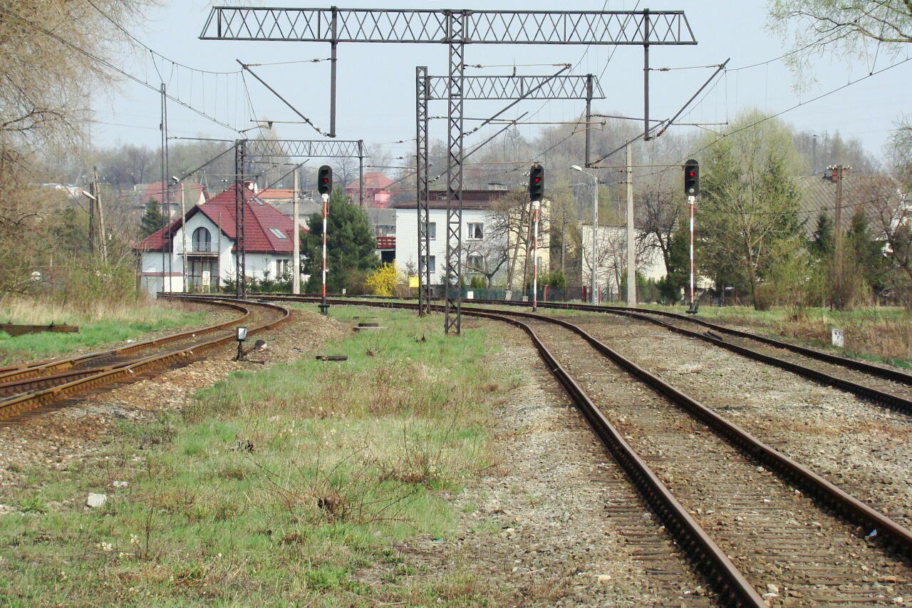 Tory stacyjne, widok w kierunku Wadowic.
